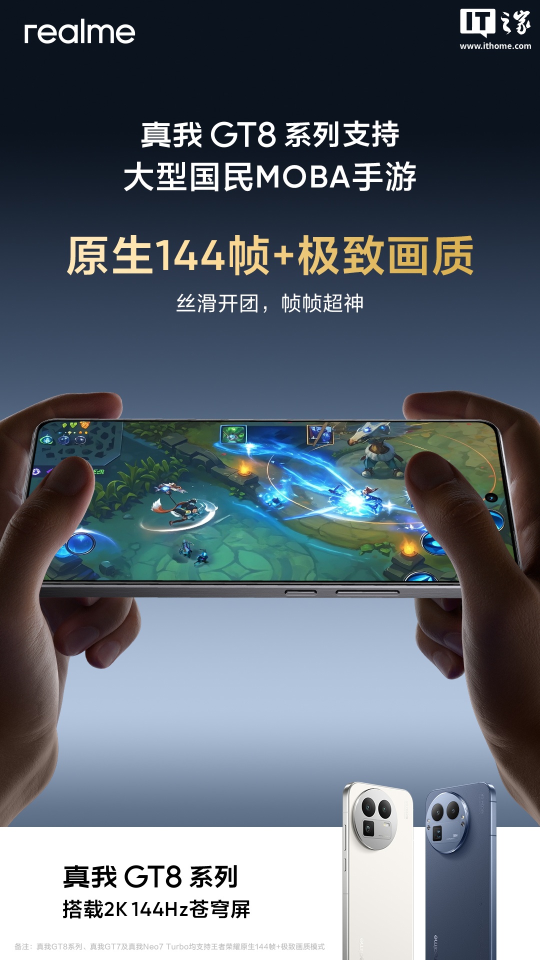 IT之家 12 月 3 日消息,真我 realme 副总裁、全球营销总裁、中国区总裁徐起今日宣布:真我 GT8 系列手机现已支持《王者荣耀》原生 144 帧 + 极致画质。