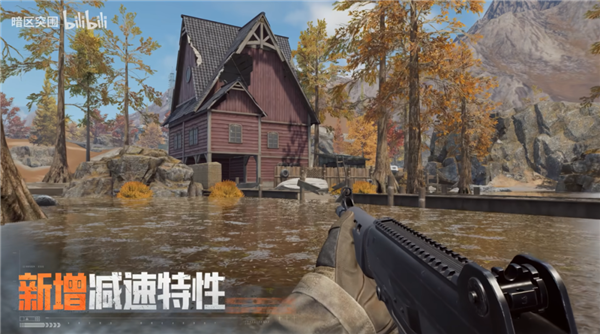 又比如暗区手游更新的新地形 “ 沼泽 ”,具有减速 debuff 的同时,还无法站立或下蹲。