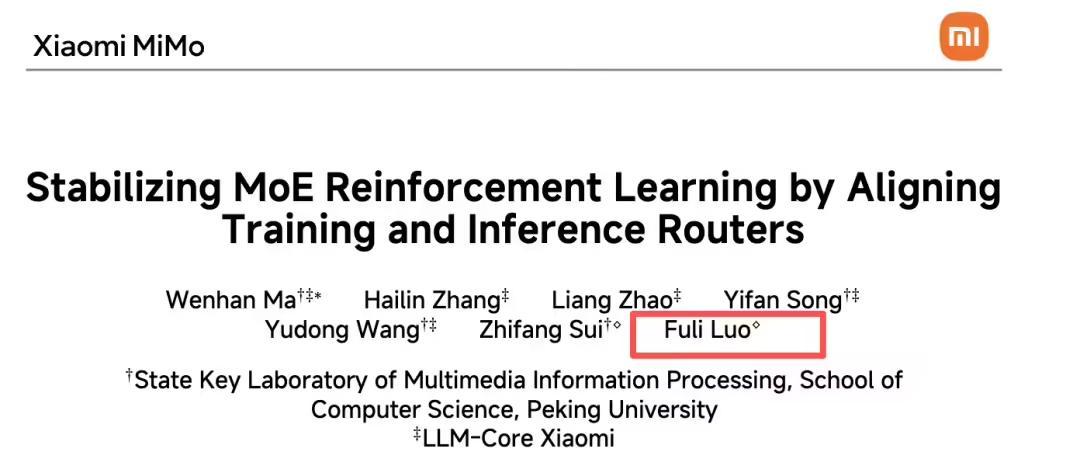 值得一提的是,小米和北京大学联合署名的论文于今年 10 月现身 arXiv,罗福莉就已经出现在这篇论文的通讯作者之列。