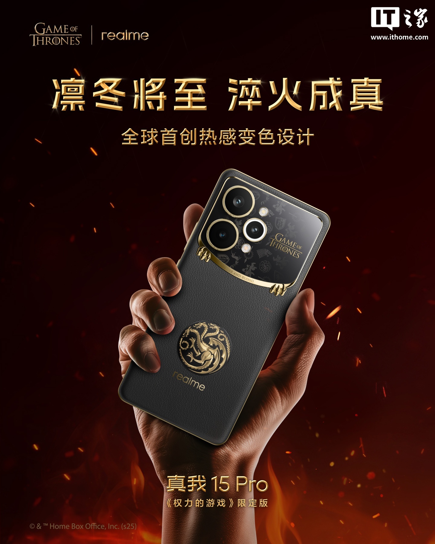据IT之家昨日报道,真我 15 Pro《权力的游戏》限定版手机将在 12 月 8 日 10:00 限量发售。