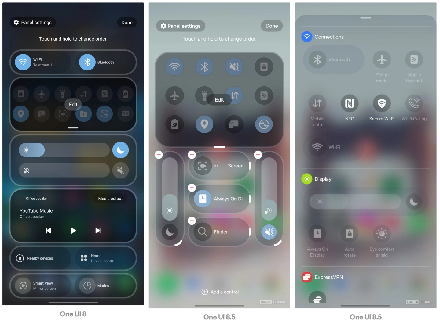 新版本最引人注目的变化在于“快速设置面板”的彻底革新。三星在 One UI 8.5 中打破了以往 One UI 7 和 8 仅支持简单排序的限制,赋予用户更深层的布局权限。