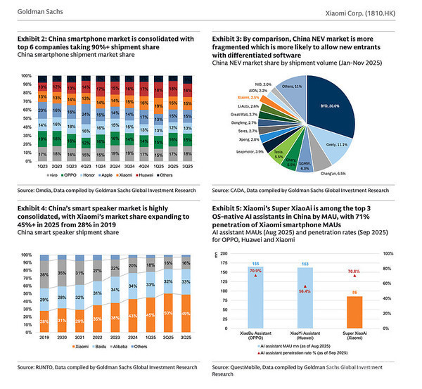 小米则以全栈布局构建AI竞争力。高盛最新研究报告显示,2025年以来小米发布一系列自研大模型,形成覆盖语言、视觉、语音、具身智能的全模态矩阵,包括视觉理解模型MiMo-VL、端到端语音模型MiMo-Audio,以及全屋智能模型MiMo-VL-Miloco等,这些投入为其“人车家全生态”提供核心支撑。
